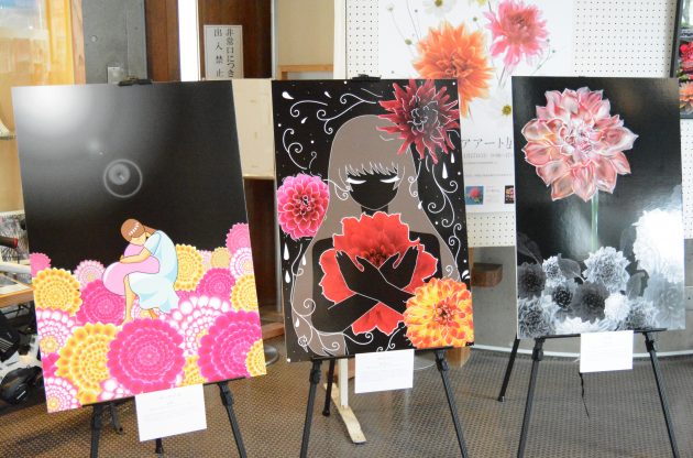 塙町とJO-BIの学生が連携し、町の魅力発信について考える授業の取組の中で、A&D学生に向けに塙町の魅力を伝えてもらい、その最終形として「塙町ダリアアート展」にA&D学生作品を展示していただいております。