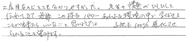 「子ども任せで漠然としていた事が具体的に掴めました。大変参考になりました」