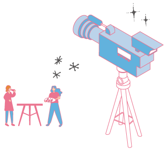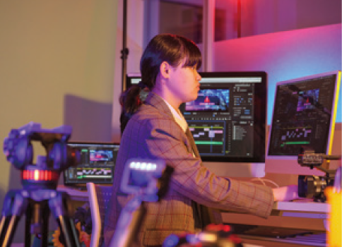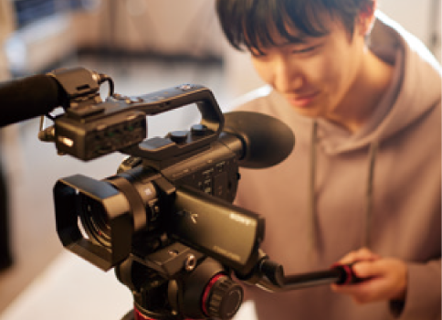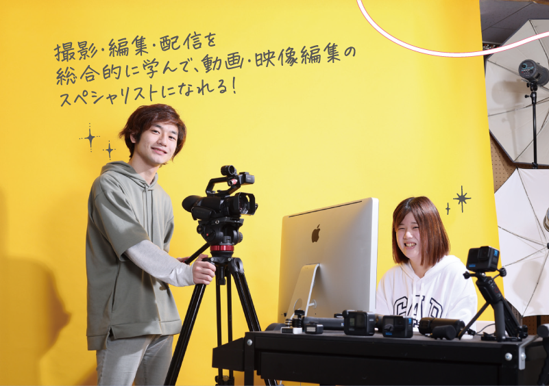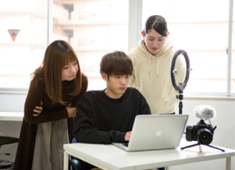 実習を通して動画撮影· 編集を学び、リアルタイム配信のスキルを身につけます。
