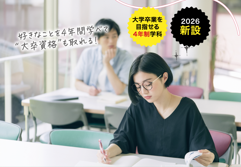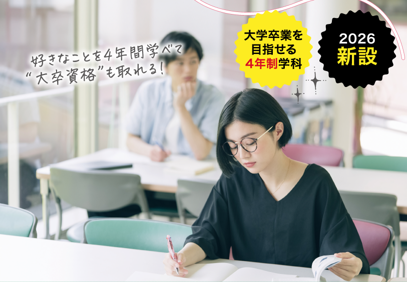 大学の通信教育課程学部との併修により、専門学校で学びながら「大卒資格」 を取得可能。