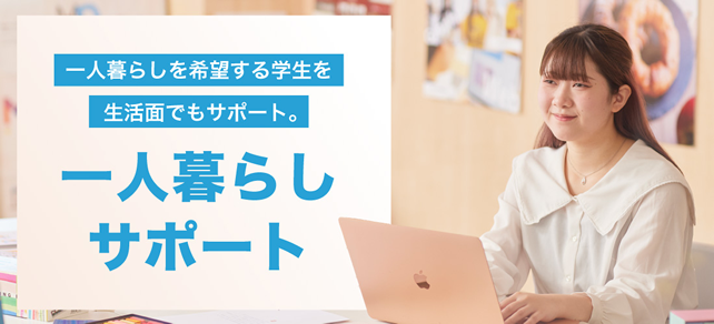 また、1人暮らしも安心な学生寮や、連携不動産会社を通じて物件探しのサポートも可能です!