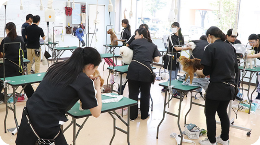 多くのトリミング実習で技術を磨き、 インターンシップで実践力を身に付けます。